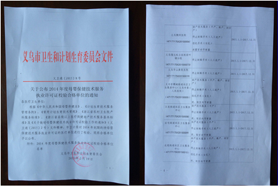 2015年初,义乌市计划生育委员会颁布2014年义乌市母婴执业许可证合格单位名单,旨在规范市场机制,加强专项技术服务和法律证件管理。